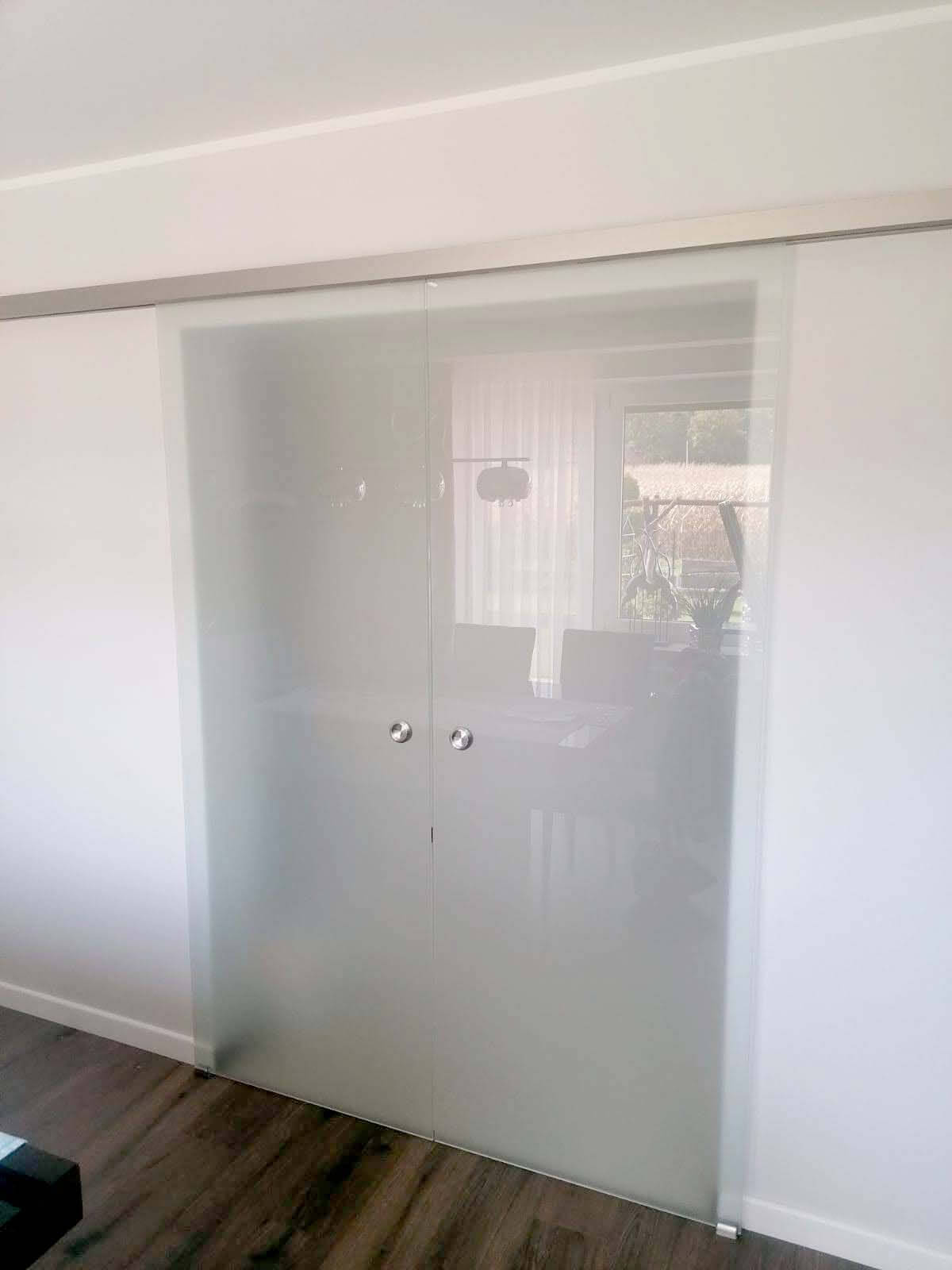 Specyfikacja: Szkło hartowane 8 mm ESG float MAT, drzwi 2x 80, wysokość 220 cm, produkt do samodzielnego montażu.