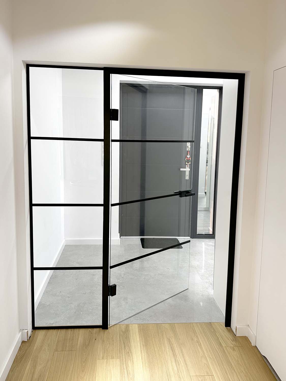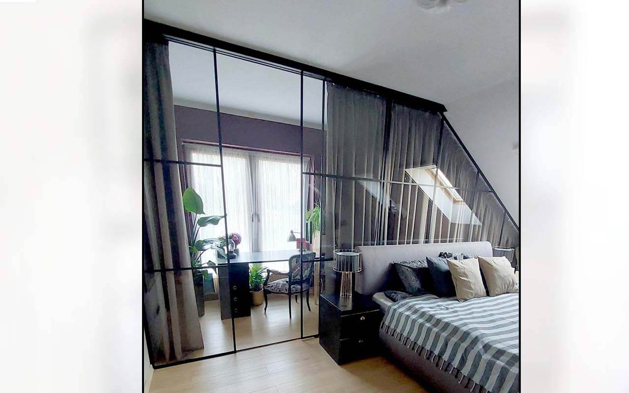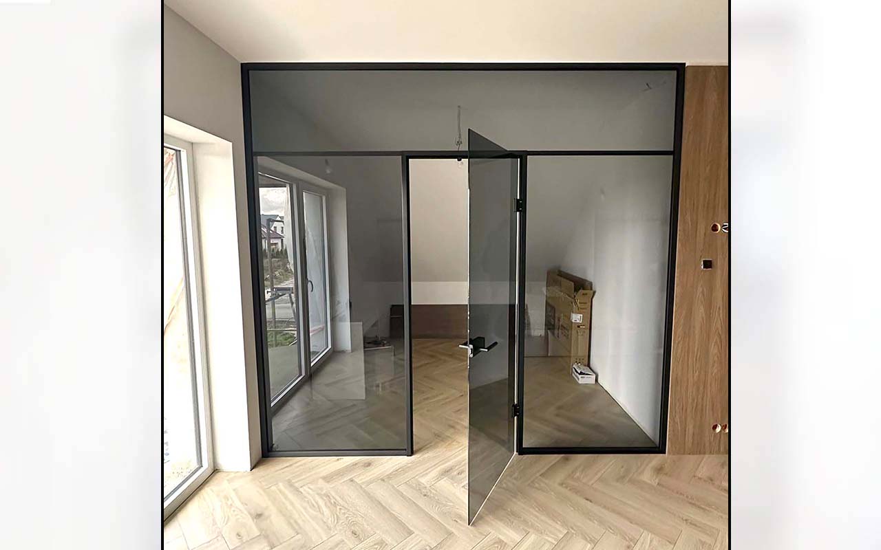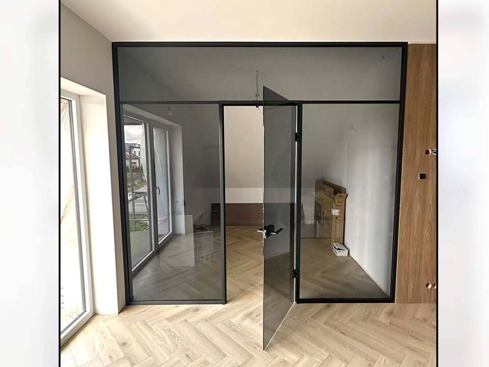 - Wizualizacja zabudowy szklanej z drzwiami: koszt uzależniony od stopnia skomplikowania projektu