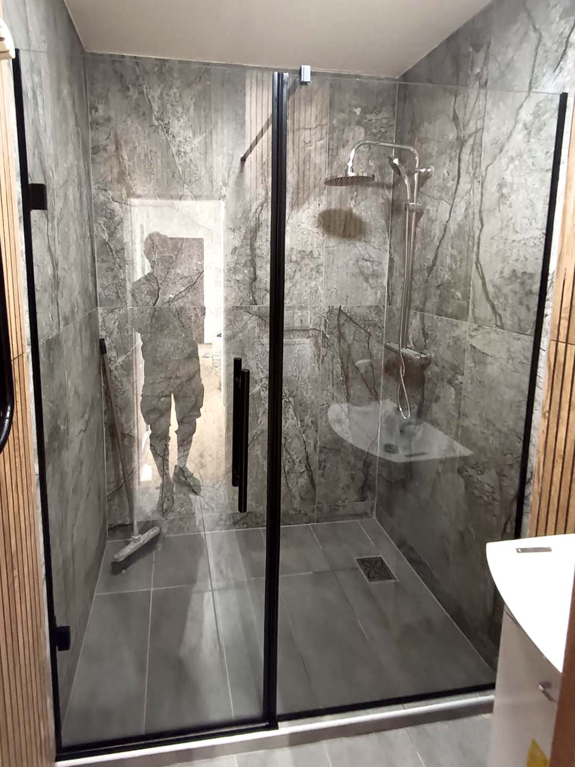 Specyfikacja: Szkło hartowane 8 mm ESG float, drzwi 70 dookoła uszczelki, ścianka 100, wysokość 220 cm, produkt do samodzielnego montażu.