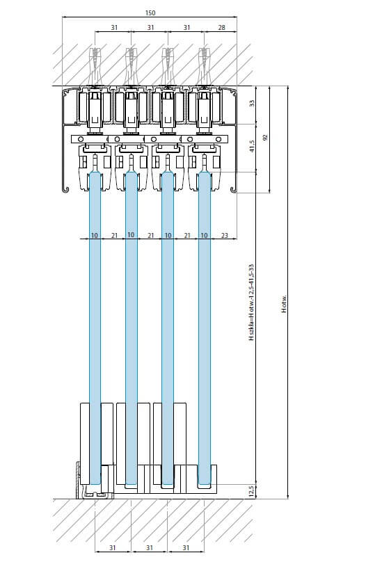 - cztery panele przesuwne