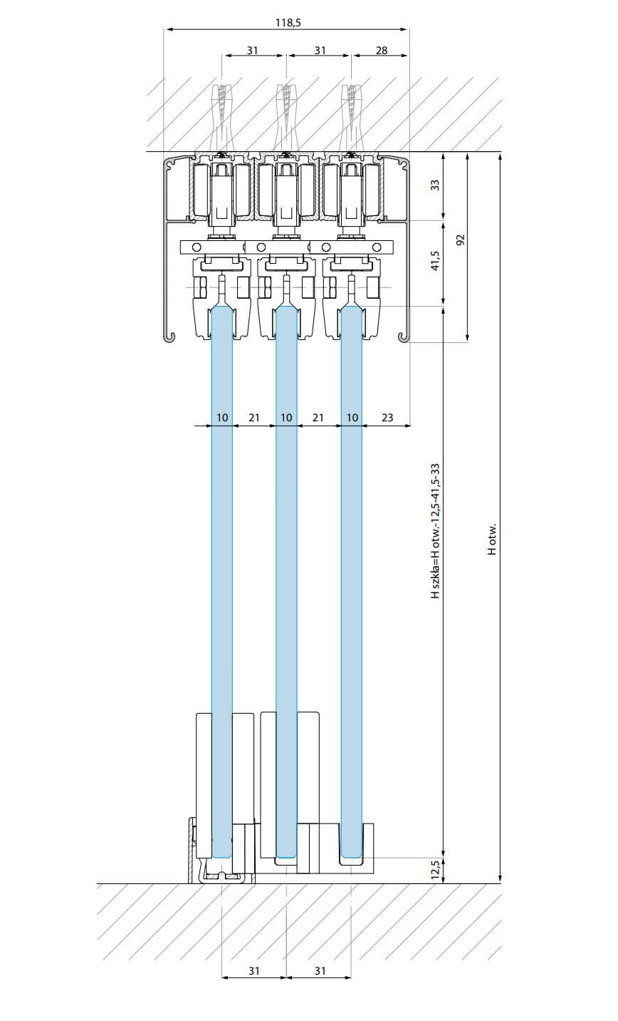 - trzy panele przesuwne