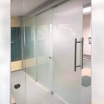 drzwi szklane przesuwne szafowe z dolnym systemem jezdnym, szkło hartowane 4mm ESG optiwhite, lakierowane