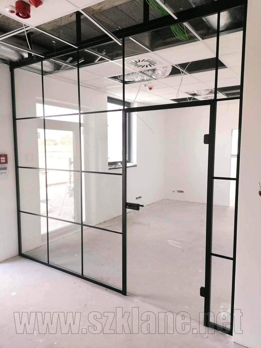 Drzwi loftowe w zabudowie szklanej